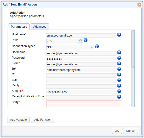 That’s it. Your MFT server would then be ready to scan for old files at the predefined schedule, list all old files that are found, and then email that list to you.